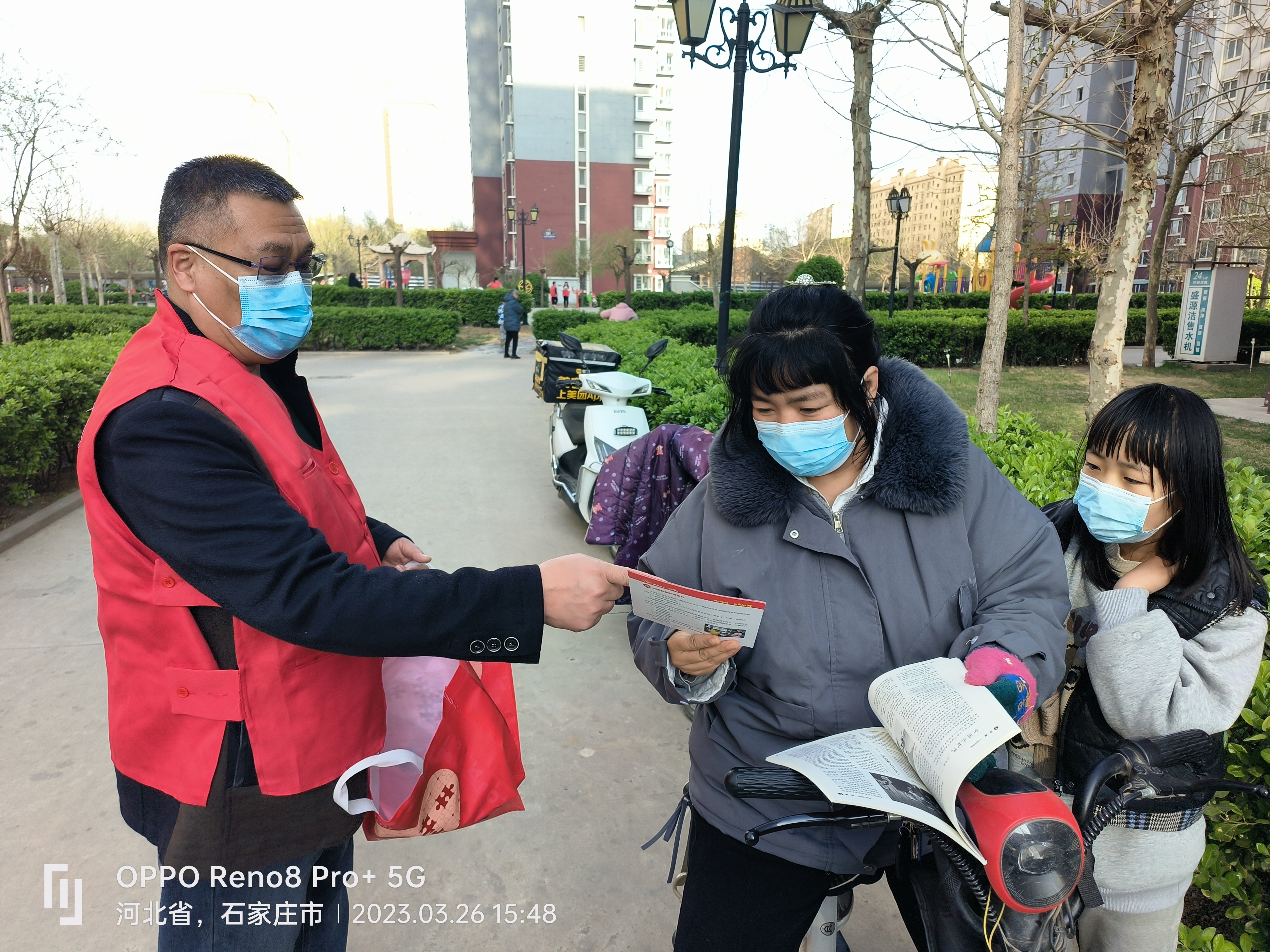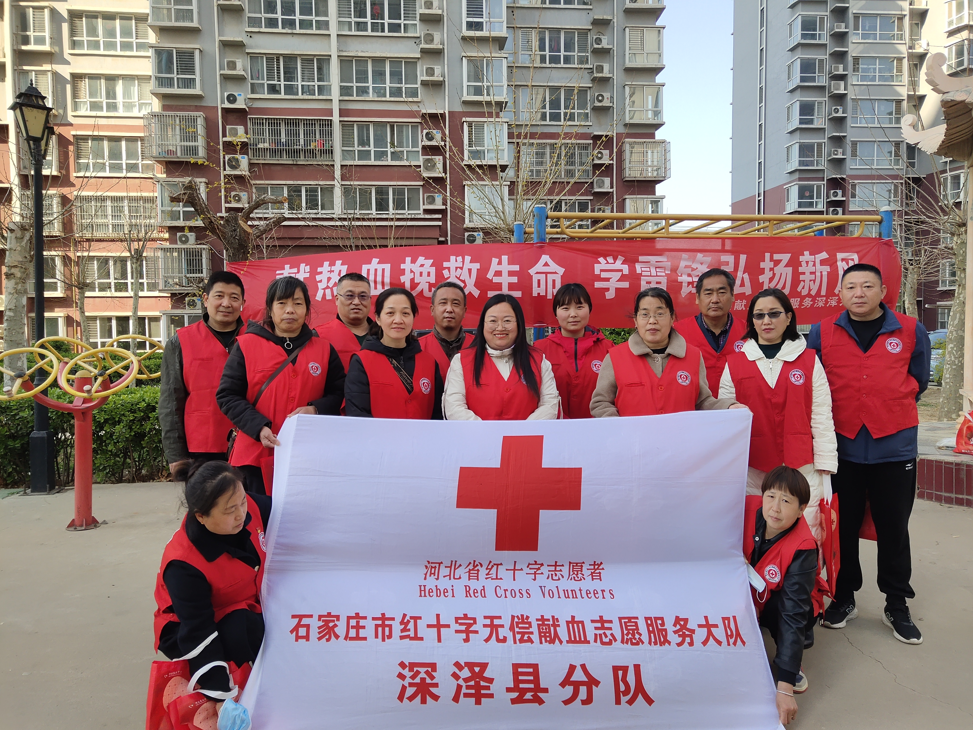 3月26日下午,在雷锋月之际,深泽县红十字会组织无偿献血志愿服务深泽分队成员李同福、徐彦芳、郝改青、李伟、李建永、曹玉风、贾月清、尹小辉、王珍杰、李倩在副队长杨复云和王品的带领下,在北方明珠小区宣传无偿献血,发放献血资料586本。让更多的人了解到无偿献血,是每个健康适龄公民的神圣职责和光荣使命,更是社会文明进步的一种体现,我们每捐出的一份热血,都承载着一份希望,都可以挽救一个生命,拯救一个家庭,希望通过自身努力带动更多人加入到无偿献血的队伍当中。